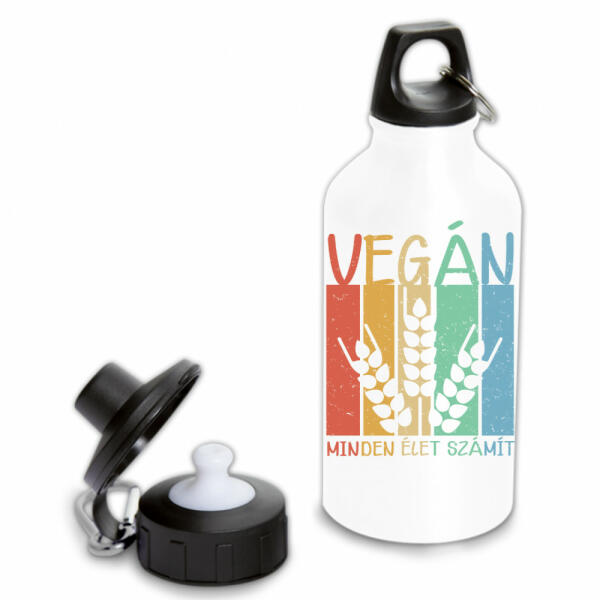 RPET kulacs rozsdamentes acél kupakkal, 600 ml. BPA-mentes. Nem alkalmas szénsavas italok tárolására.