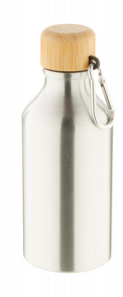 Alumínium kulacs bambusz kupakkal és karabinerrel, 400 ml.