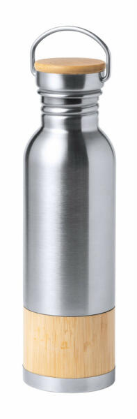 Egyfalú rozsdamentes acél kulacs, bambusz berakással és bambusz akasztós kupakkal, 750 ml.