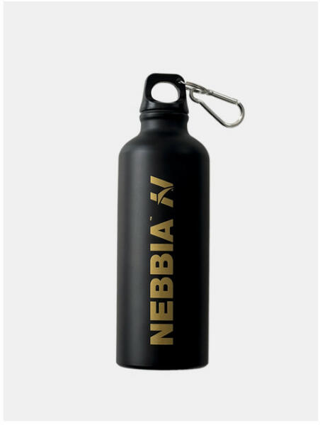 Fekete, arany színű Nebbia logóval és felirattal ellátott palack fém karabiner akasztóval, melynek űrtartalma 500 ml. Technikai leírás: szín: fekete, arany felirattal és logóval palack típusa: kupakkal főbb jellemzők: karabiner, menetes záródás űrtartalom: 500 ml