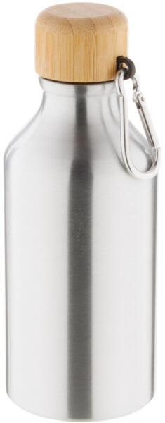 Alumínium kulacs bambusz kupakkal és karabinerrel, 400 ml.