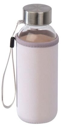 Átlátszó üveg kulacs, neoprén tartóban, záró fedéllel, hordszíjjal és 300 ml űrtartalommal, szivárgásmentes. Méret: o 5,8 x 17,2 cmEmblémázási méret: 5 x 8cm Emblémázását, feliratozását vállaljuk.