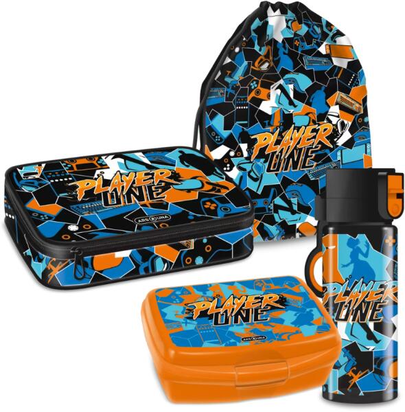 Ha a te fiad is rajong a számítógépes játékokért, akkor ezt a csomagot szeretni fogja: A szett tartalma: Ars Una Player One többszintes tolltartó Gamer mintával díszített tolltartó Ceruzatartók: 30 db Radír- és egyéb tartó: 4 db Extra: plusz zseb további írószereknek Méret: 155x225x45 mm Ars Una Player One tornazsák Torn azsák felül összehúzható zsinórral Gameres