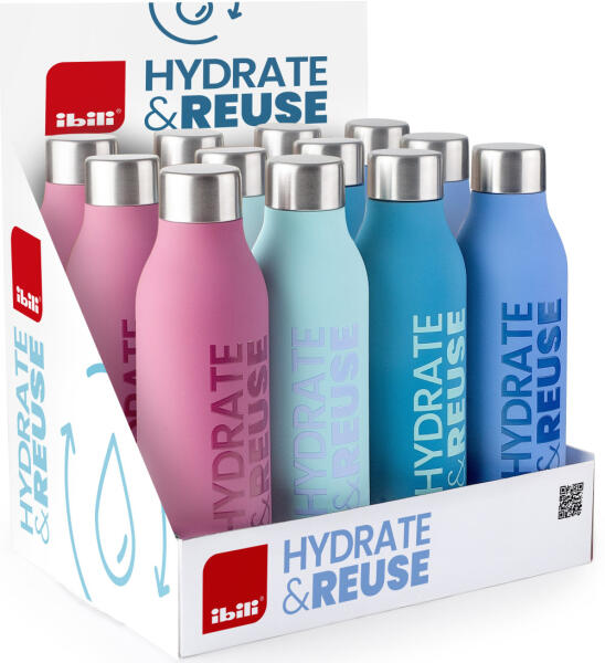 Az Ibili 500 ml-es fém termo kulacs egy duplafalú, rozsdamentes acélból készült, hermetikusan záró palack, amely akár 12 órán keresztül is megtartja a folyadékok hőmérsékletét. BPA-mentes kialakítása és stílusos színei révén ideális választás a mindennapi hidratáláshoz és környezettudatos életmódhoz. Űrtartalma: 500ml Szín: Mályva, Türkiz, Azúr, Tengerkék Ibi