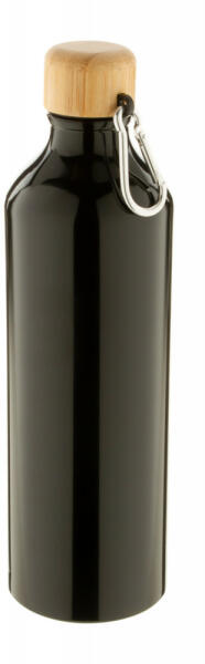 Alumínium kulacs bambusz kupakkal és karabinerrel, 800 ml.
