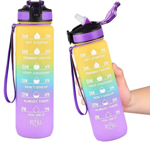 Hatalmas segítség, ha nem iszol elég vizet a mindennapi rohanás során. Szeretnél elég folyadékot bevinni szervezetedbe, de nincs elég motivációd, vagy csak szimplán nem jut eszedbe inni? Ezzel a modern, ombre kulaccsal hamar meghozhatod a kedved! Az angolul írott szövegek motiválnak, az idősávon pedig nyomonkövetheted, hogy mikor mennyit kellene innod. A test nagyjából 60%-a v