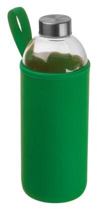 Szivárgásmentes üveg kulacs, neoprén tokban, fogantyúval, 1 literes űrtartalommal. Termékméret: O 8,5 × 24,5 cm Emblémását, feliratozását vállaljuk.