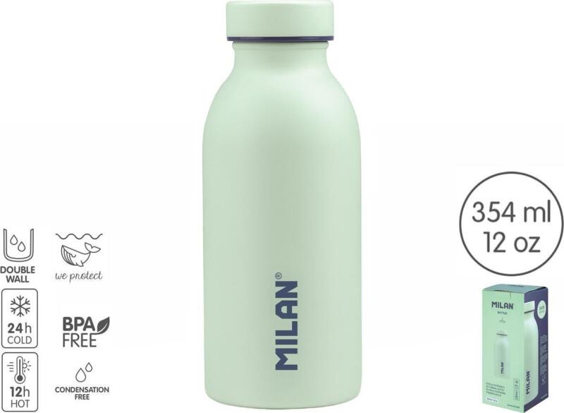 Izoterm palack dupla falú, hogy a lehető leghosszabb ideig tartsa bent a hőmérsékletet (12 óra meleg ital és akár 24 óra hideg ital). A palack hermetikus csavaros kupakkal rendelkezik, polipropilén tömítéssel.