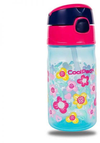 Cool Pack márkájú, BPA-mentes műanyagból készült 400 ml-es szívószálas kulacs virágos mintával. A nyomógomb segítségével könnyen felnyitható a teteje. A kulacs BPA-mentes műanyagból készült, így nem változtatja meg az italok ízét, és ha magas hőmérsékletnek van kitéve nem bocsát ki mérgező bisztenolA-t (BPA), mint a PET-palackok. Kupakja szivárgásmentesen zár.