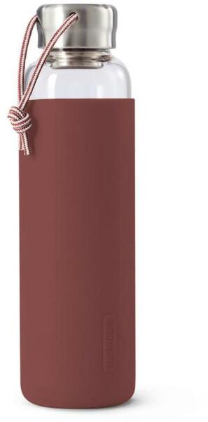 Black-Blum Glass Water Bottle vizes palack 0,60l burgundy 600 ml-es boroszilikát üvegpalack csúszásmentes védőhüvellyel, kényelmes hordozóhurokkal és rozsdamentes acél érintkezéssel 100%-os szivárgásmentesség Menet a palack nyakának belső oldalán a zökkenőmentes ivás érdekében Kiváló minőségű rozsdamentes acélból készült fedél Paracord hordozóhurok BPA-mentes Has