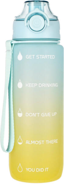 Az Ombre tritán kulacs - zöld-kék színben egészségre káros összetevőktől (BPA) mentes, erős anyagból készült és cseppmentesen záródó kupak kal rendelkezik. A trendi színvilágú tritán műanyag kulacsban az italok maximum 80˚C hőmérsékleten tárolhatók. Szintjelzései segítségével nyomon követhető az elfogyasztott folyadék mennyisége, sőt, motivációs feliratok is