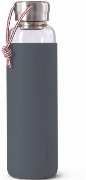 Black-Blum Glass Water Bottle vizes palack 0,60l palaszürke 600 ml-es boroszilikát üvegpalack csúszásmentes védőhüvellyel, kényelmes hordozóhurokkal és rozsdamentes acél érintkezéssel 100%-os szivárgásmentesség Menet a palack nyakának belső oldalán a zökkenőmentes ivás érdekében Kiváló minőségű rozsdamentes acélból készült fedél Paracord hordozóhurok BPA-mentes