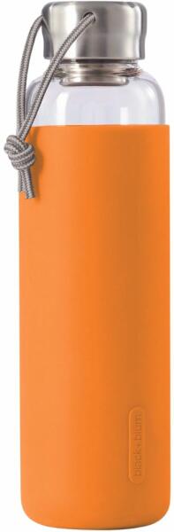 Black-Blum Glass Water Bottle vizes palack 0,60l narancs 600 ml-es boroszilikát üvegpalack csúszásmentes védőhüvellyel, kényelmes hordozóhurokkal és rozsdamentes acél érintkezéssel 100%-os szivárgásmentesség Menet a palack nyakának belső oldalán a zökkenőmentes ivás érdekében Kiváló minőségű rozsdamentes acélból készült fedél Paracord hordozóhurok BPA-mentes Hasz