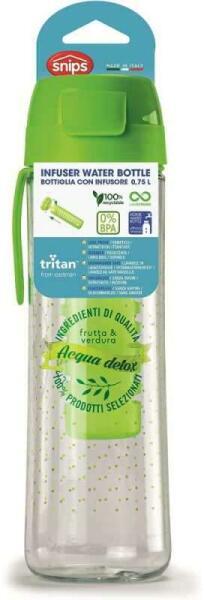 Snips 000433 Vizes flakon kivehető infúzorral INFÚZIÓS PALACK, 0.75 L, TRITÁN A palack anyaga tritán, ami egy BPA, flatát és oldódásmentes biztonságos műanyag. A Tritán flakonból semmilyen vegyület nem oldódik a benne tárolt folyadékba. Nehéz összetörni, sokkal jobban ellenáll a fizikai behatásoknak, mint más műanyagok vagy az üveg. A kulacs filter részébe akármilyen