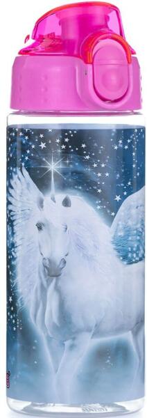 Műanyag palack egyszarvú motívummal. A palack kiváló minőségű, nem veszélyes anyagból készül - tesztelve, nem tartalmaz BPA-t vagy ftalátokat. Mosogatógépben mosható, legfeljebb 80 ° C hőmérsékleten. Méretek: átmérő 6,5 cm, magasság 20 cm Térfogat: 500 ml