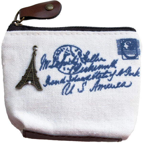 Fehér színű Eiffel tornyos pici pénztárca. A pénztárca vászon anyagból van. Mivel kicsi, ezért könnyedén elfér egy kisebb táskában is. Cipzáros, egy rekeszes. Mérete: kb. 10,5 x 8 cm