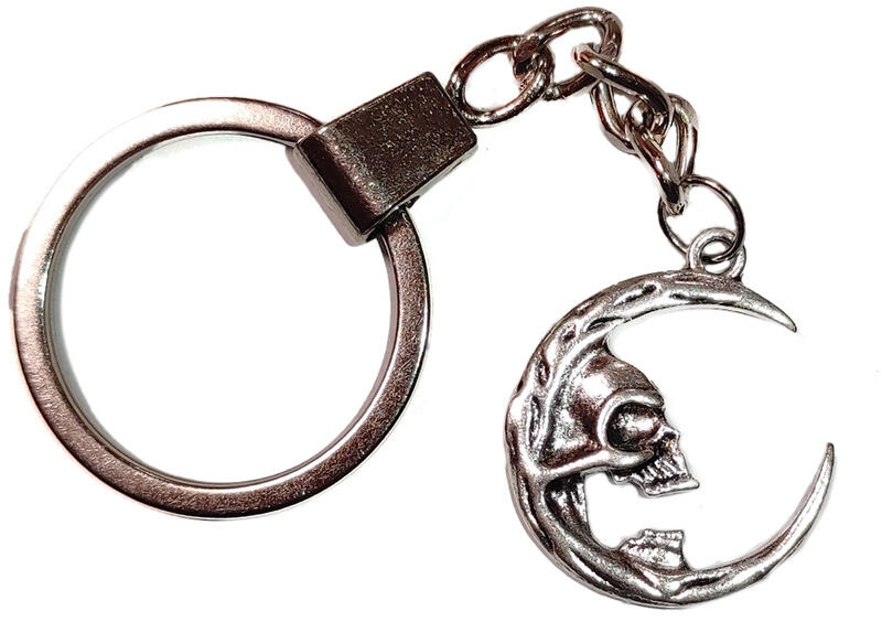 Koponyás Hold kulcstartó. Paraméterek: Medál mérete 2,7x2,2 cm. Anyaga fémötvözet. Kulcstartó karika típus eltérhet a képen láthatótól, készlet szerint küldjük. Ékszeralapok anyaga: rozsdamentes acél.