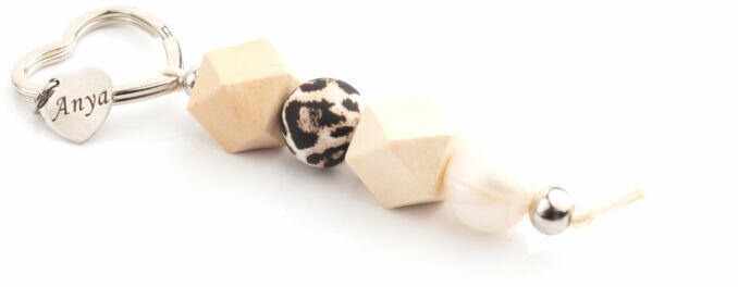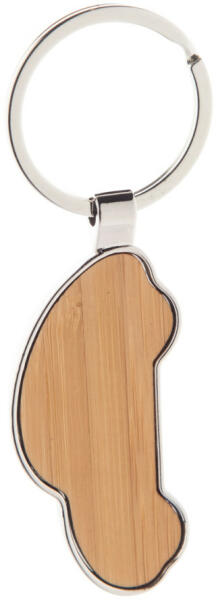 Autó alakú, fém kulcstartó bambusz betéttel. Kraft papír dobozban szállítjuk.