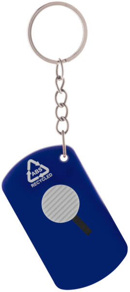 Újrahasznosított ABS műanyagból és rozsdamentes acélból készült papírkés önbehúzódó pengével és fém kulcstartóval.