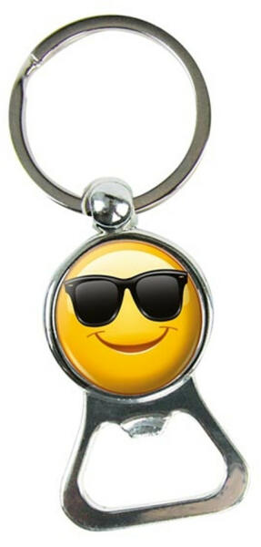 napszemüvegges sörnyitó Emojis fém kulcstartó sörnyitóvalnapszemüveges mosolygó arcos mintaacél kulcskarikával