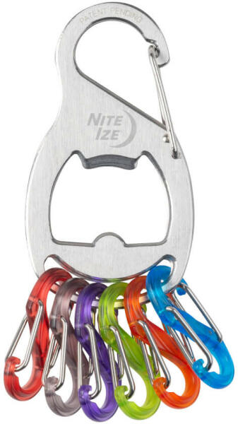 Rozsdamentes acélból készült, sörnyitóként is funkcionáló karabiner hat db színes, műanyag, kulcstartó S-Biner karabinerrel. Csatold a kulcsokat egyesével az S-Binerekhez, majd az egész KeyRack-et csatold a nadrágod övbujtatójához vagy a táskád pántjához. Acél színű változat.