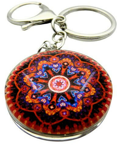 Mandalás kulcstartó narancssárga-szín árnyalataival, egyedi külsővel, amit táskadísz ként is használhat. Kedves ajándék lányoknak, nőknek egyaránt. Anyaga: Üveglencse - Mindkét oldalán azonos mintával Fém lánc, karika + karabíner Mérete: Átmérő 4 cm Vastagság 1.5 cm Kulcstartó: + 6 cm