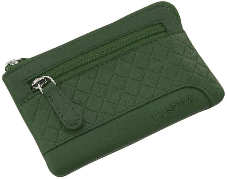 bőr kicsi kulcstartó elején cipzáras zseb cipzáras fő rekesz belül fém láncon, két kulcskarika Szé:10 x Ma:8 cm