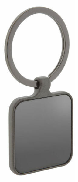 Fém, négyzet alakú kulcstartó, mindkét oldalon fényes felületű fém betéttel. Fekete díszdobozban szállítjuk.