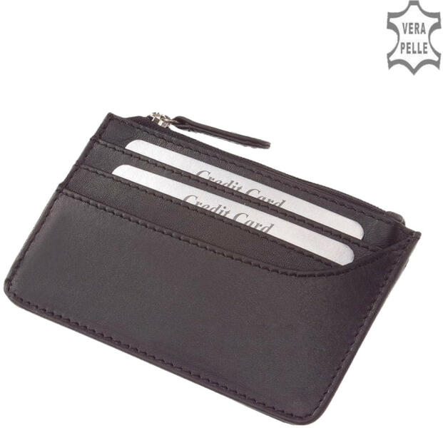 bőr kicsi kulcstartó elején 3 db kártyatartó cipzáras fő rekesz belül fém láncon, egy kulcskarika hátulján 1 db kártyatartó Szé:11,5 x Ma:8 cm