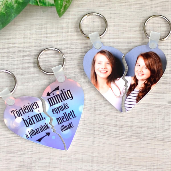 Lepje meg osztálytársát, legjobb barátját ezzel az egyedi fényképes páros kulcstartóval. A kulcstartó egyik felén a közös kép kapott helyet, a másik oldalon pedig az alábbi felirat található: Történjen bármi, a jóbarátok mindig egymás mellett állnak! Fontos különbség a hagyományos fényképes kulcstartóval szemben, hogy itt közvetlenül a felületre van rányomva a k