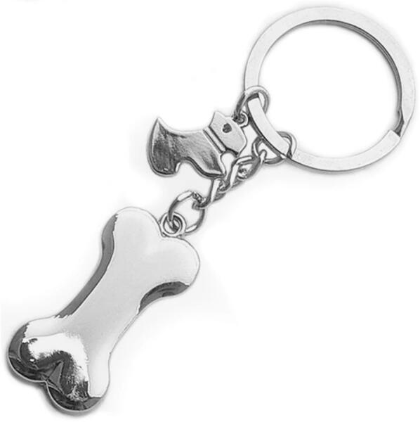 Termék jellemzői: Fényes ezüst színű csont/kutya alakú kulcstartó. A csont mind a kétoldalasan gravírozható. A teljes mérete karikával: 9 x 3 x 0,5 cm Csomagolás: elegáns mattfekete kartondoboz