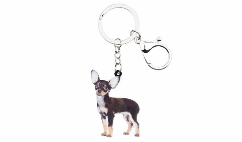 Akril-fém kutyás kulcstartó - Csivava (Chihuahua) Méret: 4,8cm x 3,3cm Súly: 13,3g