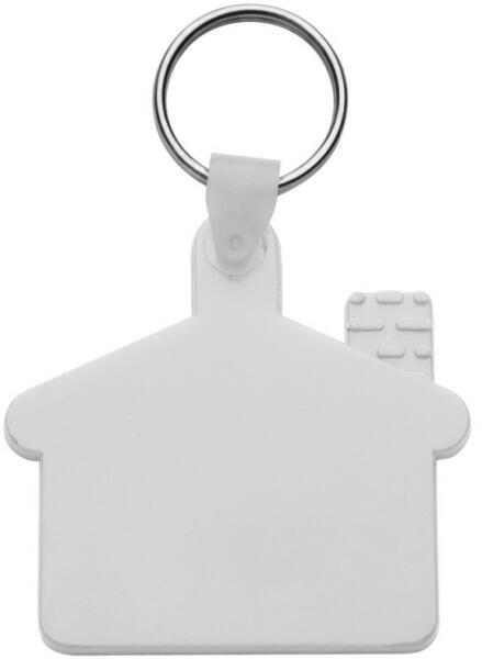 Házikó formájú, műanyag kulcstartó fém kulcskarikával.