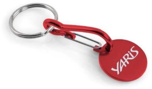 TOYOTA YARIS ÉRMÉS KULCSTARTÓ , A GYÁR ÁLTAL FORGALMAZOTT TERMÉK. Alumínium érmés kulcstartó Toyota felirattal, amely a legtöbb bevásárlókocsiba használható. Toyota Yaris kulcstartó piros színű karabinerrel. Hasznos ajándék a márka szerelmeseinek. Cikkszám : TBMYAR000500