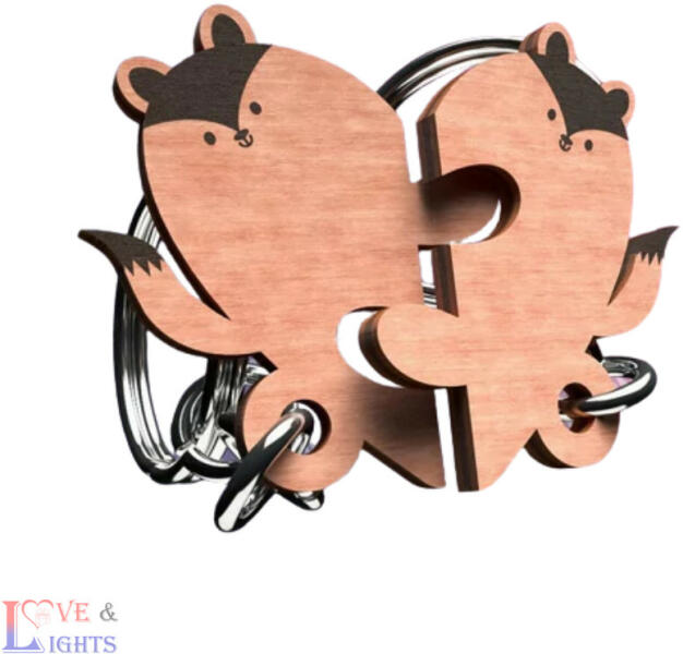 Aranyos páros kulcstar fából - róka alakú, egyedi gravírozással Napjainkban egyre népszerűbbek az egyedi ajándéktárgyak. Melyek jelképezik, hogy fontos nekünk az ajándékozott, így egy olyan tárggyal szeretnénk meglepni ami különleges. Éppen ezért kitűnő választás egy személyre szóló, gravírozott páros kulcstartó, melyen a Ti nevetek szerepel :) A kulcstartó méret