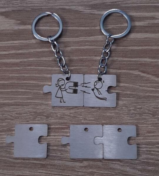 Egyedi puzzle alakú kulcstartó acélból. Párban gravírozva ( 2db) eladó. Plusz darab is csatolható hozzá. (+1000 Ft ) Méret:kb 5 x 2,5 cm.