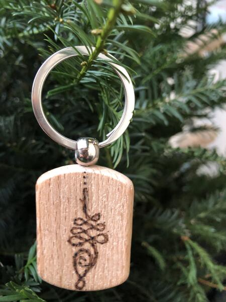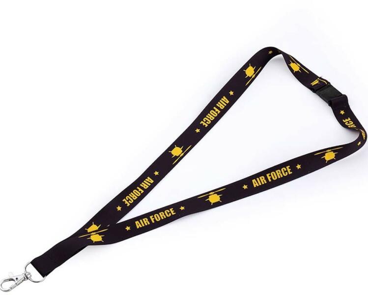 Nyakú kulcstartó nyomattal, karabinerrel a végén. Méretek: kb 42 x 2 cm