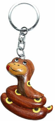 Kedves állatos kulcstartó, fa kulcstartó kígyó 5cm.