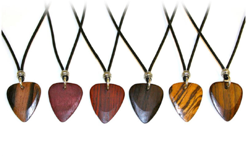 TIMBERTONESNecklace with fine wood plectrum (available in Macassar Ebony, Purple Heart, Cocobolo, African Ebony, Zebrawood & Santos Rosewood) and 24" black ...