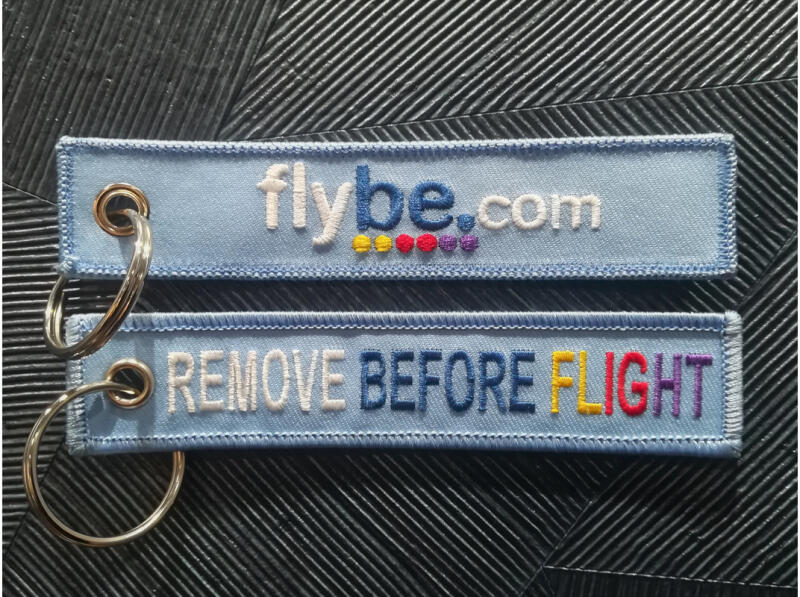 Flybe Remove Before Flight kulcstartó. 13 x 3 cm-es, fém kulcskarikával
