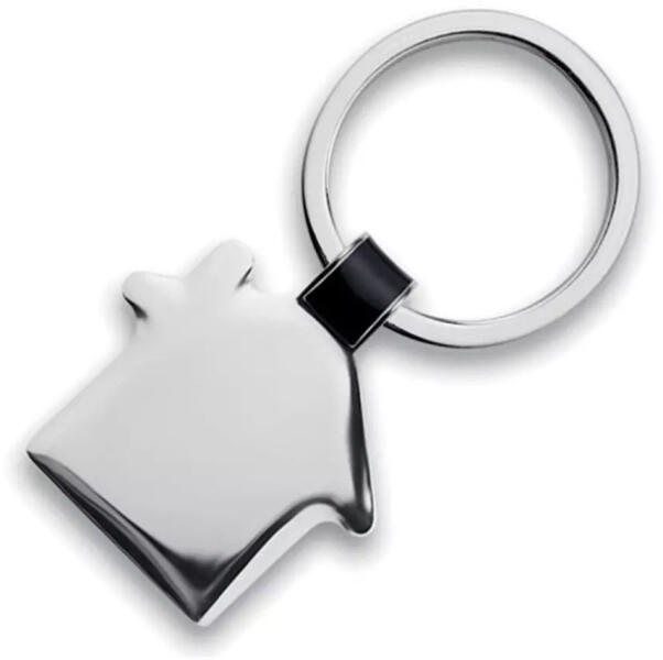 Termék jellemzői: Ház alakú kulcstartó fényes nikkelezett kivitelben. Körvonalasan gravírozható. Fekete kartondobozba csomagolva szállítjuk. Gravírozási technika : Körvonalas (mechanikus) Méret:37x30x2mm Anyaga : Fém, fényes nikkel borítással Kulcshoz való csatlakozás:hagyományos kulcskarika.