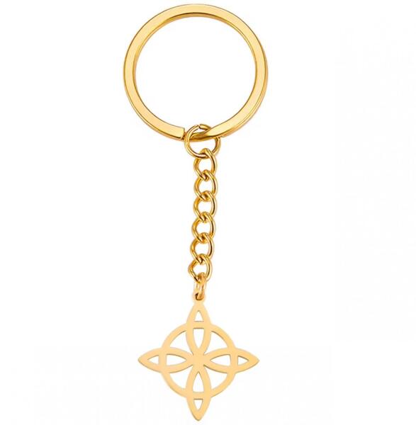 Eskama Kulcstartó Ez a kulcstartó csillag alakú medállal van díszítve, amely ötvözi az eleganciát és a spirituális jelentést. Ideális kiegészítő azok számára, akik a stílusos elemeket részesítik előnyben személyes tárgyaikban. A kulcstartó szép ajándék lehet, vagy személyes emlékeztető az élet fontos értékeire. Specifikáció: Anyag: Fémötvözet Szín: Arany/Tip