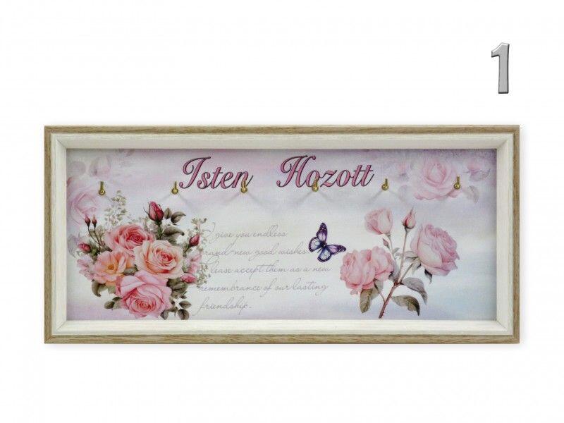 Fali kulcstartó rózsás 30x13cm 4féle 04901 Ez a fali kulcstartó ideális bárki számára, aki rendszerezni szeretné otthonában a kulcsait, és közben egy dekoratív elemmel is gazdagítani kívánja lakását. Különösen ajánlott családoknak, akiknek több kulcsuk van, vagy azoknak, akik gyakran keresik a kulcsaikat. A "Fali kulcstartó rózsás 30x13cm 4féle" egy praktikus és stíl