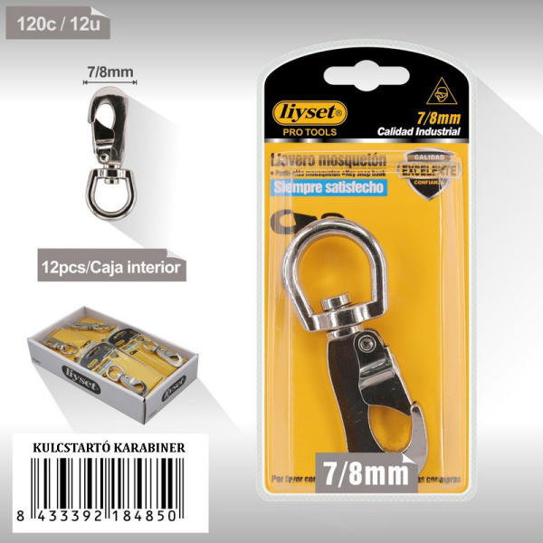 FORGÓSGYŰRŰS, CHROM BEVONATTAL, ERŐS RUGÓVAL, MODERN KIALAKÍTÁS KULCSTARTÓ KARABINER. Alkalmas otthona, autója és irodája kulcsainak szétválasztására, ezzel csökkentve a kulcs elvesztésének kockázatát. Kulcstartó: Van egy forgógyűrű a kulcsokhoz és egy gyorskioldó segédhorog, amely segít a kulcsok rendezettségében és könnyen hozzáférhetőségében Termék anyaga: