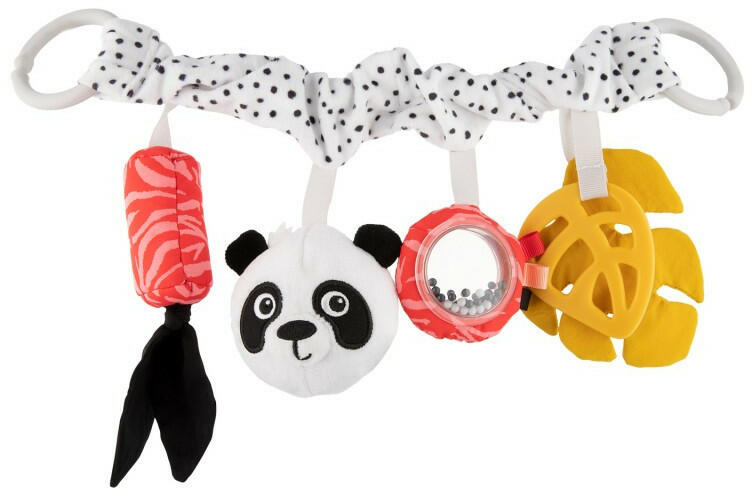 A babakocsiba való szenzoros medál remek ötlet a babák első játékának , amely minden sétát és utazást kellemesebbé tesz. Tökéletes babakocsihoz és autósüléshez - a medál mindkét végén biztonságos és kényelmes műanyag gyűrűkkel van felszerelve. A medálhoz rögzített játékok segítik a motoros képességek fejlesztését (fogás, húzás, remegés), aktiválják a ha