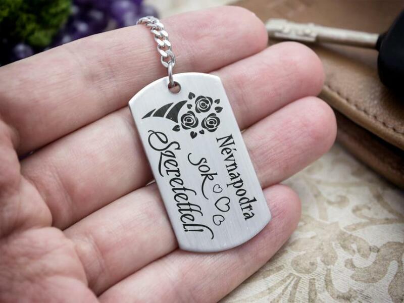 " Névnapodra sok szeretettel! " feliratos acél szögletes medálos kulcstartó A számotokra állítottunk össze egy kedves meglepetést! Az év minden napjára jut a névnapokból, a legtöbb esetben egyszerre többen is ünnepelnek. Tökéletes meglepetés kulcstartónk, ha valami kedveset szeretnél ajándékozni. A jókívánság nőnek és férfinak egyaránt szép ajándék. És ráadásu
