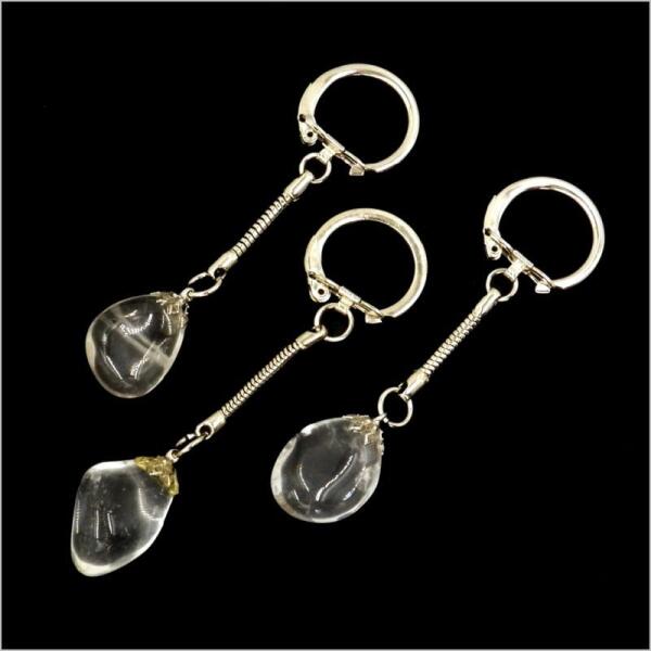 Hegyikristály szabálytalan dobcsiszolt kulcstartó. Az ásvány mérete változó: kb15x25mm A hegyikristály gyógyhatása