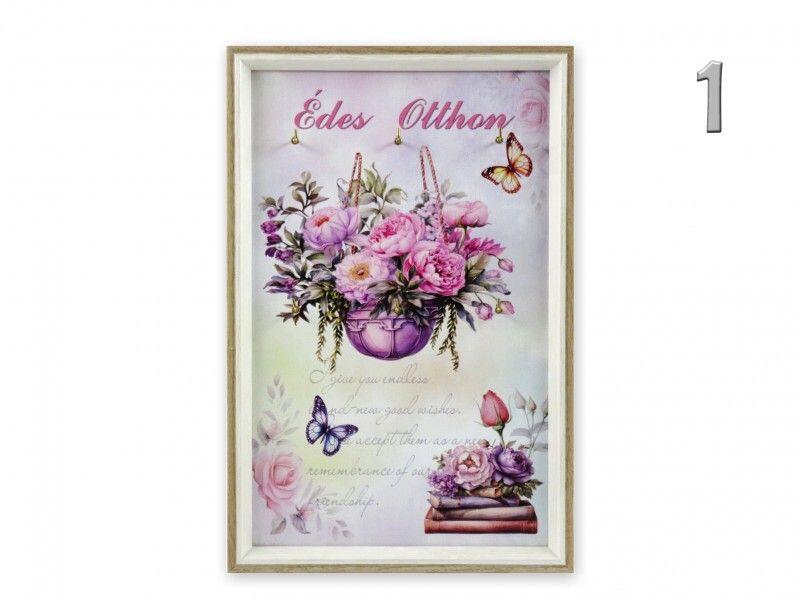 Fali kulcstartó virágos 19x29cm 4féle 04902 Ez a fali kulcstartó ideális bárki számára, aki rendszerezni szeretné otthonában a kulcsait, és közben egy dekoratív elemmel is gazdagítani kívánja lakását. Különösen ajánlott családoknak, akiknek több kulcsuk van, vagy azoknak, akik gyakran keresik a kulcsaikat. A "Fali kulcstartó virágos 19x29cm 4féle" egy praktikus és stíl