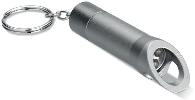 Fém kulcstartós elemlámpa Irodai készletről 1 db. Fém kulcstartó elemlámpa LED fénnyel és üvegnyitóval. A működéshez szükséges 3 db LR44 gombelemmel szállítjuk.