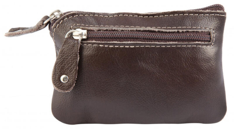 Barna valódi bőr kulcstartó szütyőke. 11x7 cm.